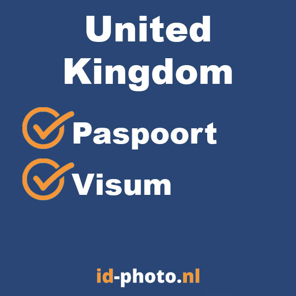 Pasfoto voor Engels paspoort of visa. Klik op de blauwe knop hieronder en maak of verstuur een zelfgemaakte foto.
